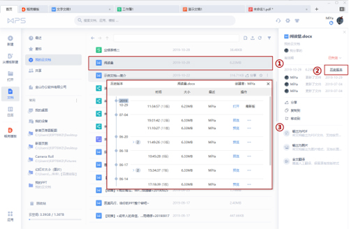 检查中发现错漏,或是电脑设备突然出现故障导致文档版本出错,稳定情绪果断处理才是最节省时间的方式。利用WPS云文档功能将文档同步到云端,即使出现电脑宕机或是版本被覆盖等“意外”,也能轻松找回文档的历史版本。