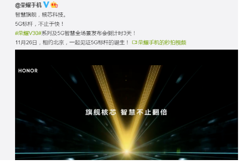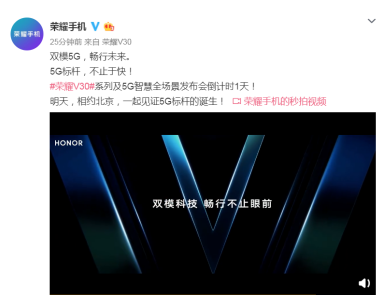 “5G标杆,不止于快”,备受期待的荣耀V30目前已进入发布倒计时阶段。11月25日,荣耀官方放出一段5G宣传视频,再次引发外界关注和讨论。结合目前官方释放出的预热动作来看,荣耀V30系列在5G、芯片、影像和锐科技等方面都将有创新突破,更多重磅惊喜待明天发布会揭晓。