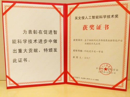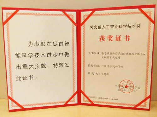 本届“吴文俊人工智能科学技术奖”共评出82个获奖项目成果,中兴网信与深圳大学等单位共同申报的项目为《基于物联网的多维健康数据智能平台关键技术及应用》,在科技进步奖项中摘得一等奖。