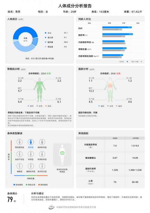 众所周知,肥胖是困扰当代人类的健康问题。更注重健康的人士会通过加强运动锻炼,管理自身的饮食来预防肥胖问题,借助体脂秤时刻查看自己的身高体重指数和体脂率判断身体脂肪。然而,只简单地关注人体整体脂肪率也不一定能真正了解自己的身体。比如,经常被提及的梨型身材,脂肪主要分布在臀部和下肢,对健康的风险并不大,但如果是脂肪大量堆积在腰腹的苹果型身材,就需要及时关注并尽量改善。因此,知道脂肪的更准确数据和具体分布才更重要。