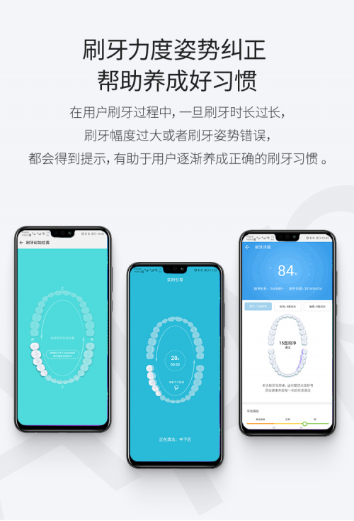 对于那些刚学会刷牙的儿童或刷牙姿势不正确的用户来说,优漾尤为适用。通过华为智慧生活APP实时引导刷牙过程,智能监测用户的刷牙姿势、刷牙力度,避免力度过大损伤牙龈,有效提高刷牙清洁率。而且,优漾支持15天数据存储,30条数据循环刷新,即使在离线状态下,也可在下次连接时进行数据同步。