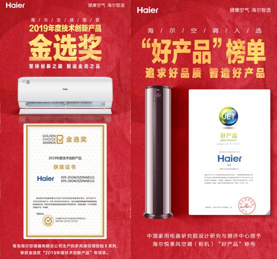 那么,如何挑选一款好空调呢?2019年年末,中国家用电器研究院针对过去一年市场上的空调产品进行综合测评。12月17日-18日,在中国家用电器研究院及旗下检测机构知电实验室发起的“好产品"、“金选奖”两项评选测试活动中,海尔多风感柜挂系列分获“好产品”和“金选奖”等2大奖项。