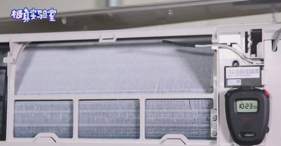 取下空调面板和过滤网后,打开海尔空调“一键自清洁”功能。蒸发器上会以低温凝结一层肉眼可见的白霜,随后在迅速化霜后,蒸发器上的灰尘等脏污会直接被流水冲走,实现空调“自己洗澡”。而普通空调没有自清洁功能,更依赖专业人士上门深度清洁,也不能保证持久干净。
