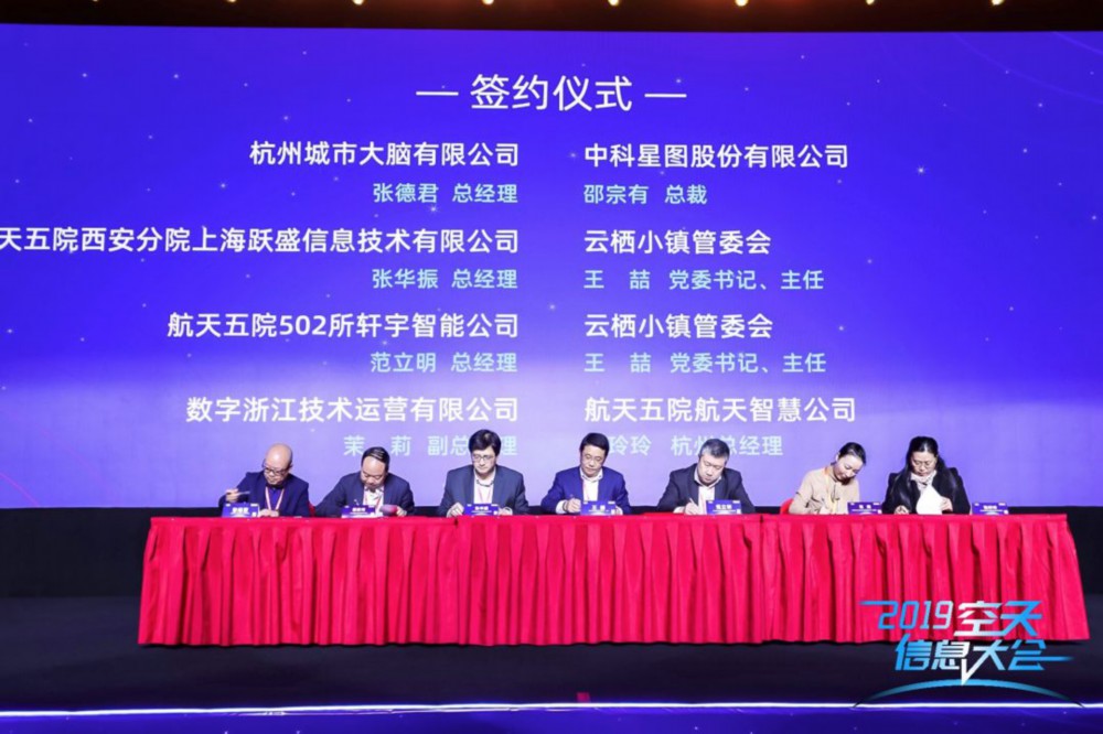 与此同时,杭州城市大脑和中科星图战略合作框架协议、航天五院西安分院上海跃盛公司和云栖小镇管委会合作协议、航天五院502所轩宇智能公司和云栖小镇管委会合作协议、数字浙江技术运营公司与航天五院航天智慧公司合作协议在会上签订。