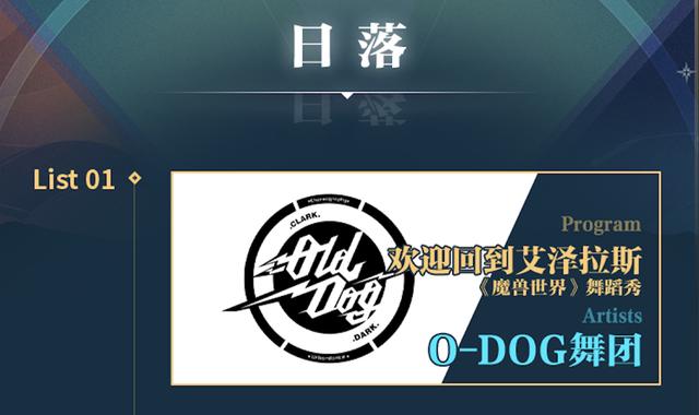节目单显示,B站晚会开场"欢迎回到艾泽拉斯"是一场由 O-DOG 舞团带来的《魔兽世界》舞蹈秀。O-DOG 舞团是国内一线街舞团队。2018年,他们就曾以火影忍者为主题编舞,收获亚洲街舞大赛第三名的成绩。这一次,O-DOG 舞团挑战《魔兽世界》,不知道会以什么样造型和舞蹈来承载魔兽世界玩家十五年来心路征程。