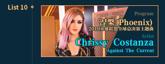 这首歌曲也出现在了B站新年晚会节目单中。美国女歌手 Chrissy Costanza 将带来由她首唱的2019英雄联盟全球总决赛主题曲《涅槃》。在B站官宣该节目后,# 英雄联盟上跨年晚会#话题的阅读量接近1亿,有网友表示"跪求B站安排LPL战队与Chrissy合唱《涅槃》"。到时候,台上是否真会有 LPL 战队出现也让人拭目以待。