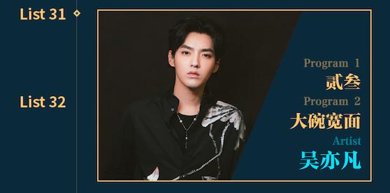 这一次B站新年晚会,亦是吴亦凡首次登上B站的官方舞台。作为倒数第二位出场嘉宾,他将在现场演唱两首自己的原创歌曲《大碗宽面》和《贰叁》。