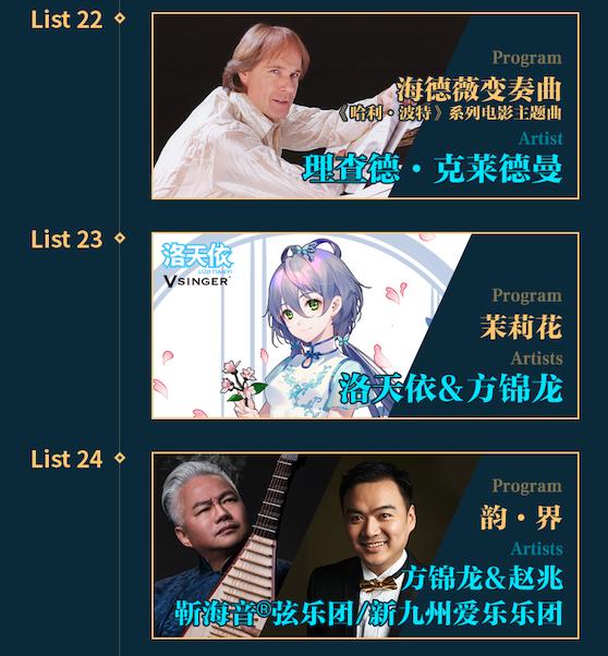 作为B站打造的晚会,UP主们的表演也必不可少。新年晚会还邀请了音乐区知名UP主墨韵Moyun、孟晓洁Jae、易言、陈乐一等人表演国风、动漫歌曲。更具未来感和B站特色的是,晚会上虚拟偶像洛天依也将和中国著名琵琶演奏家,现代五弦琵琶代表人物方锦龙合作一曲《茉莉花》,打破虚拟和现实的边界。