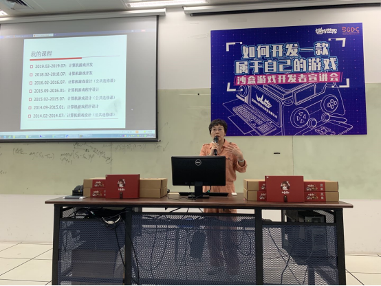 12月18日晚19:00,讲座准时开始。深圳大学计算机与软件学院储颖副教授首先对她所教授的游戏开发课程作了简单的介绍,并表达了对国产游戏开发工具及沙盒创作平台的期待。《迷你世界》触发器所拥有的兼容性、实战验证平台以及技术支持的优势,都是她考虑将该款产品引入课堂教学的原因。她同时建议对游戏开发感兴趣的学生。可以首先尝试通过自学的形式,体验游戏开发的过程。