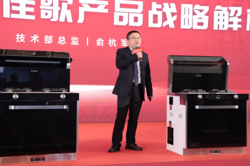 随着用户的变化,企业的技术也要相应地改变,把握潮流、蓄势未来。年会现场,佳歌集成灶技术部总监俞杭军先生上台讲述了佳歌集成灶产品战略解析以及新品介绍。
