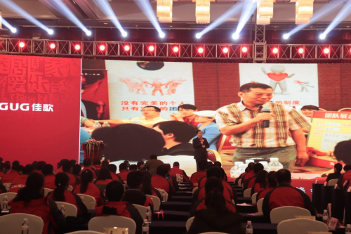 伴随着热烈的掌声,袁总经理表示佳歌会始终坚持以客户为本,以经销商为本,实现共赢。袁总经理的致辞极大的增强了大家的信心,赢得了经销商的一致赞赏。