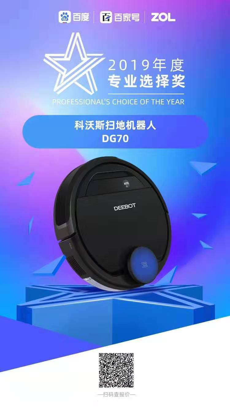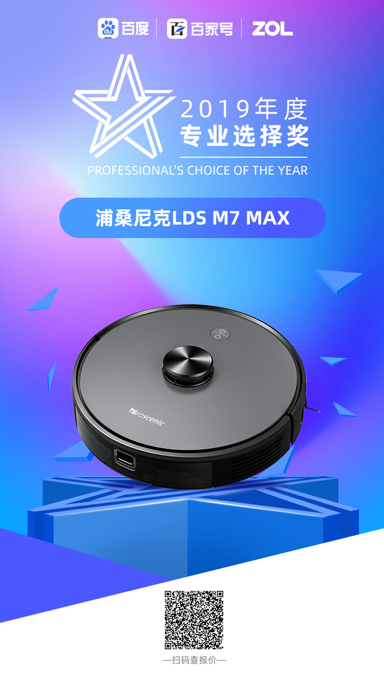 其中,在扫地机器人产品线中,浦桑尼克M7 Max扫地机器人、科沃斯扫地机器人DG70荣获2019年度专业选择奖。