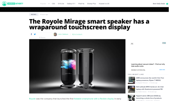英国权威网站Pocket-lint报道柔宇科技在CES 2020发布“crazy”新品。TechRadar、Digital Trends、Android Authority等国际主流科技媒体对于本次新品发布会都进行了第一时间报道。