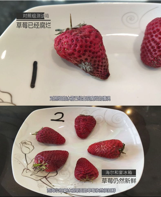 另外,在海尔全空间保鲜冰箱,不仅是青菜能存15天,易坏的草莓、存久易流血水的冻肉也能得到健康保鲜。从知电实验室对海尔503和宴冰箱的一组测评中可以看到,15天长久保鲜的草莓依然鲜嫩,经历15天冷冻的牛排,在解冻后也不会有血水流出,最大程度保留了食材营养。