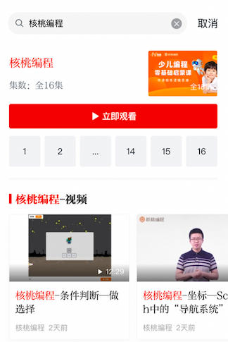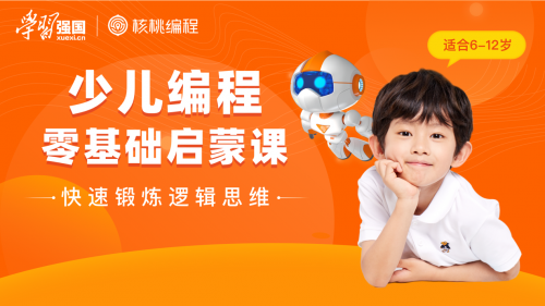 “学习强国” App为中宣部下属国家级媒体和全国性学习平台,核桃编程的少儿编程零基础启蒙课程现在已经登陆,通过首页的“推荐频道”进入“在家上学”专题的“强国宝库”页面,或通过“教育”频道进入点击“大课堂”页面即可免费学习相关编程课程,内容包括循环、算法、随机数、条件判断、克隆等等。