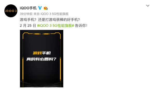 iQOO 3的优秀电竞体验,优秀的硬件素质只是其中一个方面,软件的极致优化也是不可或缺的方面。一直以来,iQOO的游戏空间、游戏魔盒、电竞模式、游戏画中画、游戏免打扰等王牌功能都将在iQOO 3上再次得到提升。至于会以何种方式呈现在我们面前,要等到2月25号14:30 iQOO 3新品发布会上正式揭晓。