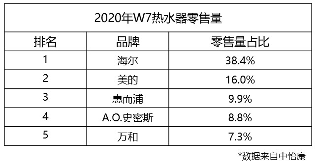 具体从品牌来看,零售量前5的是海尔、美的、惠而浦、A.O.史密斯与万和。海尔占比38.4%,超过整体销量的1/3,美的销量占比为16.0%,位居TOP2,惠而浦以9.9%的份额位居TOP3,A.O.史密斯跌出前三。