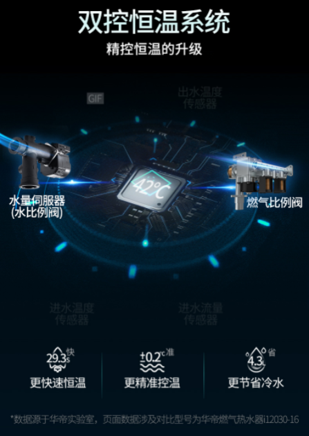 华帝燃气热水器i12055,全面升级精准恒温技术,拥有智能双控恒温系统。其采用第三代水量伺服器和燃气比例阀,水气双调更稳定,使用时水温温差在0.2摄氏度上下波动,用户肌肤难以感知温差变化,达到真恒温的极致洗浴体验。
