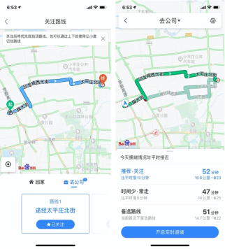 据悉,用户在百度地图中设置好“家”和“公司”的位置后,只要规划前往这两地的驾车导航,或通过“出行助手”中的上下班功能,就可以快速进入熟路模式。