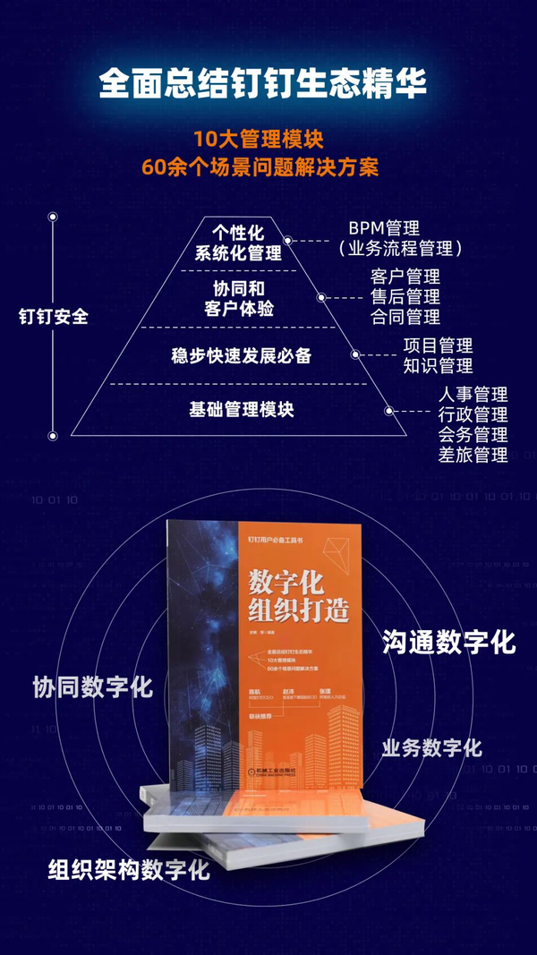 这是钉钉生态第一本全面、系统的讲解钉钉及生态ISV产品,在实际工作场景中的运用的书,书中从基础的理论知识,到实用场景,再到进一步系统化的应用,是钉钉生态第一本即学即用的企业数字化管理工具书;