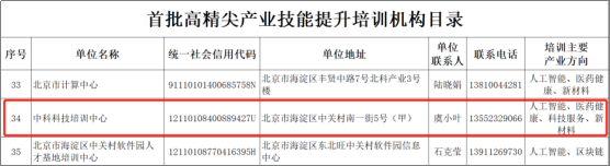 中科科技培训中心入选“首批高精尖产业技能提升培训机构目录”
