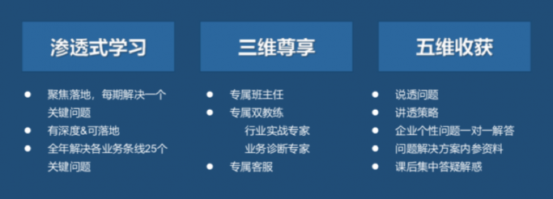 其一,名师领跑计划的渗透式学习着重通过与专家老师的多维互动打造一个立体学习空间。在课上说透问题、讲透策略的基础上,课后仍然可以继续与名师保持互动,参与集中答疑与企业一对一问题解答。专家将在研讨环节针对课上主题引发的企业经营实战中的现实问题给出具有极强落地性的解答。