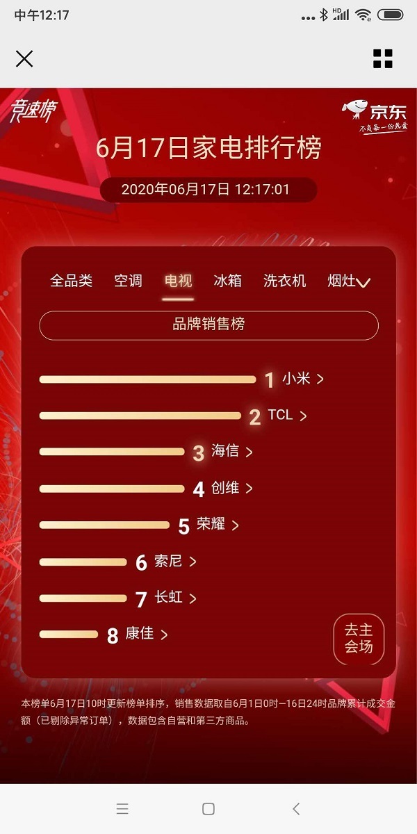 据京东相关数据显示,在6月17日当天家电排行榜中,TCL跃居当日成交金额第二名,仅次小米。大国品牌TCL,则多年来一直专注深耕大屏电视的技术研发,在消费者心智中形成了”选大屏电视就选TCL“强势消费印记。