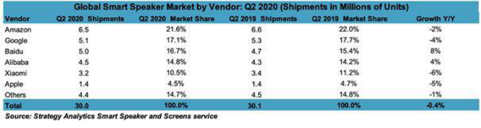 根据第三方权威数据机构Strategy Analytics发布的市场报告,小度智能音箱第二季度出货量国内第一,全球前三,同时在全球智能音箱头部品牌中增幅第一,保持去年至今的强劲增长势头,持续领跑国内市场。