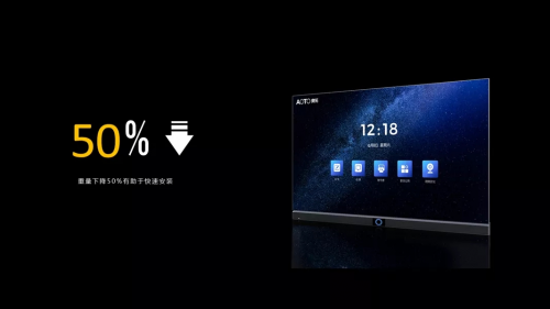 另外,CV智能会议一体机搭载的是奥拓电子在全球申请48项专利的Mini LED技术,它解决了超小间距LED显示屏易损坏、COB产品不可现场维修以及表面墨色、显示亮色一致性等问题。同时采用MINI LED显示屏,提高了对比度,使产品拥有更好的屏幕坚固性和密封性以及更优光学设计和交互性。