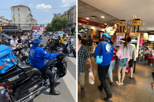 外卖骑手的职业价值越来越受到社会认可,也正在被更多人看见和尊重。肩挎“史上最小外卖箱”的外卖小哥出圈后,品牌也快速入局支持。近日,饿了么与七匹狼电商便联合推出了一套独特的骑手装备,旨在宣扬勇于担当、积极生活、健康向上的当代骑士精神,并为这个群体重新赋予“饿狼骑士”的称号。网络上,“饿狼骑士”身着跨界联名外套、开着哈雷摩托、头戴印第安羽冠、肩挎超小号外卖箱的照片广为流传。