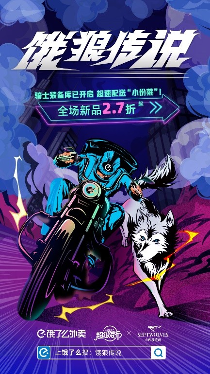 饿了么与七匹狼电商此次以“饿狼传说”为主题进行跨界合作,正是对这两大营销策略的实践与落地。开设「饿狼餐厅」概念店,上线“饿狼骑士”联名潮服,焕新蓝骑士形象装备,更拓展了“外卖配送服装”的新服务:以30分钟即达的方式,刷新了用户在新零售世代的购物体验,也诠释了饿了么“爱什么,来什么”的品牌主张。