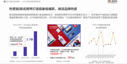 跨界营销,往往能够突破原有场景,以新的方式引爆话题,为品牌开拓新的想象空间。CBNData发布的《2020新消费洞察报告》显示,去年联名跨界产品的线上销售额增速是整体市场的8.5倍。