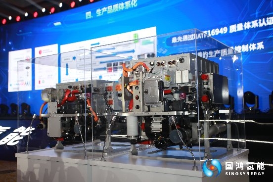 发布会上,国鸿氢能鸿途G系列燃料电池新产品亮相。