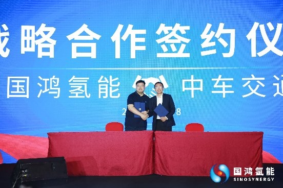 发布会上,国鸿氢能与中车交通进行了战略合作签约。