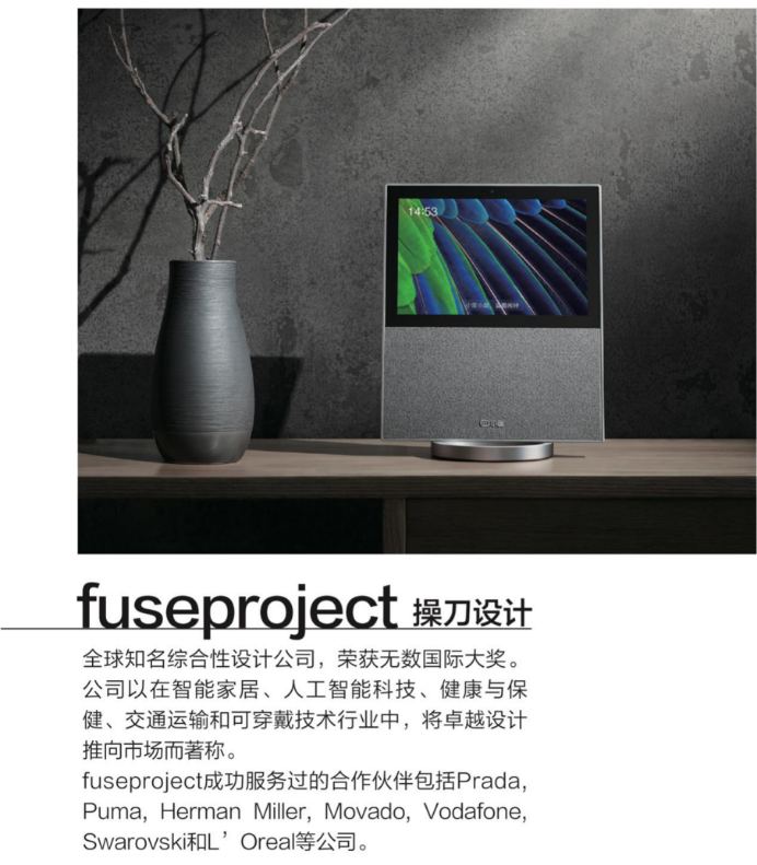 外观设计上,重磅邀请全球知名综合性设计公司、硅谷顶级设计团队fuseproject操刀设计,率先突破传统智能音箱的塑料形态:采用金属、网布等多种材质拼接,同时在底部增设金属圆环形底座,现代感的几何美学,彰显高级感。20mm纤薄机身搭配10.1英寸超大屏幕,正面黄金比例设计,凸显小度智能屏X10旗舰大屏典范。