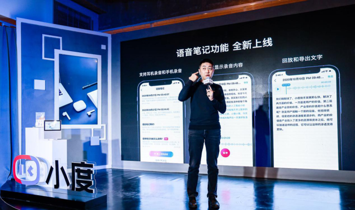 全新升级的语音笔记功能语音即可一键开启,用户可以使用手机或耳机双收声渠道进行录音,录音过程中,小度耳机可对语音实时识别即刻转为文字显示,实现一边录音一边记录。录音完成后,用户在录音回听时,可对文字进行简单的编辑,最后进行导出、备份,全程简单易上手,真正释放办公人群生产力,工作效率大幅提升。景鲲现场对这个功能的演示,也让2020小度秋季新品发布会成为了“一场不用安排速记的发布会”。