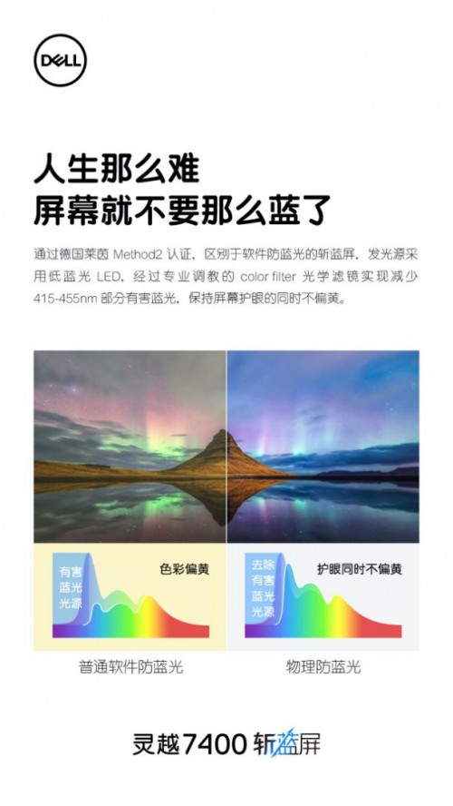 现代人无论学习工作还是影音娱乐,长时间面对电脑屏幕,视力健康都会受到影响。戴尔灵越7400具备物理防蓝光技术,并支持DC调光无频闪,呵护用户的双眼。同为16:10的屏幕黄金比例,相较传统16:9比例,在同一画面下提供了更多地信息,使用更为舒适。