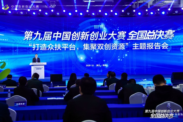 11月5日,2020第九届中国创新创业大赛全国总决赛开幕式在杭州隆重举行。科技部火炬中心主任贾敬敦、致公党中央宣传部部长钱叶用、浙江省科技厅厅长高鹰忠、杭州市人民政府副市长柯吉欣、杭州高新区党工委书记王敏等领导和来自全国工商联、中国互联网投资基金、深圳证券交易所、招商银行等单位嘉宾,以及投资人、企业家、媒体记者、参赛代表300余人参加了开幕式。