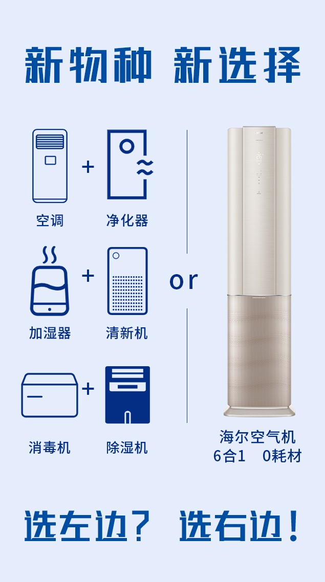 海尔水洗空气新物种集空调、净化器、加湿器等6种功能于一体,开创了空气产品新品类。海尔空调还同步启动了为新物种征名用户交互活动。截至目前,已有不少网友在海尔空调官方微信后台提交了创意,诞生了“清风机”、“智能氧森机”、“海尔·洗空器”等各式各样的创意名称。