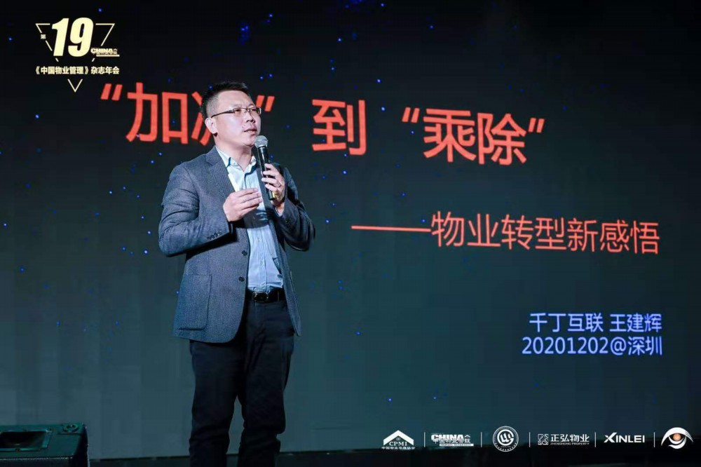 千丁互联高级副总裁王建辉发表了题为《“加减”到“乘除”—物业转型新感悟》的主题演讲,与参会嘉宾共同分享了千丁互联在赋能物业企业科技化转型方面的所思、所想、所践行。