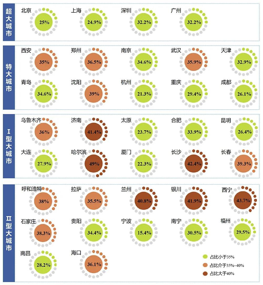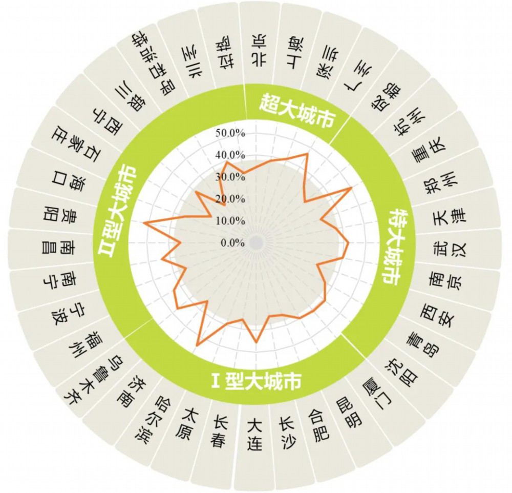 图:不同规模城市位阶差≥3的交叉口占比分布(%)