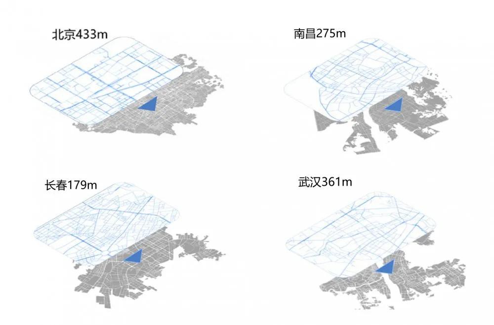 图:不同规模城市交叉口平均间距分布(m)