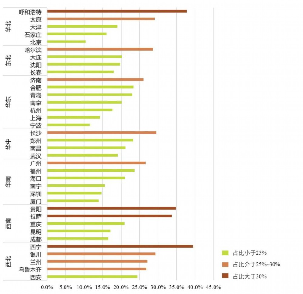 图:不同区域城市位阶差≥4的接入占比分布(%)