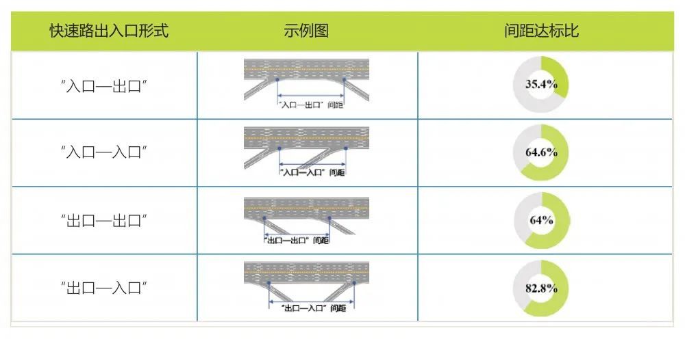 图:不同形式城市快速路出入口间距达标比分布(%)
