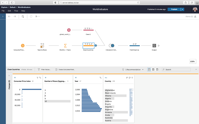 Tableau Prep Builder 旨在让客户能够在分析数据之前,通过 Tableau 用户熟悉的简单拖放操作,轻松地对数据进行组合、整理和清理。得益于 2020.4 中的新增功能,这些操作现在可以完全在 Web 浏览器中完成,从而为组织提供更加简洁的体验,同时让 IT 管理员能够集中进行管理部署和版本控制,无需手动更新每一台计算机。现在,分析人员即使不使用Desktop,也可以实现连接到数据源、清理和准备数据、构建用于分析数据的仪表板,甚至共享数据等操作。