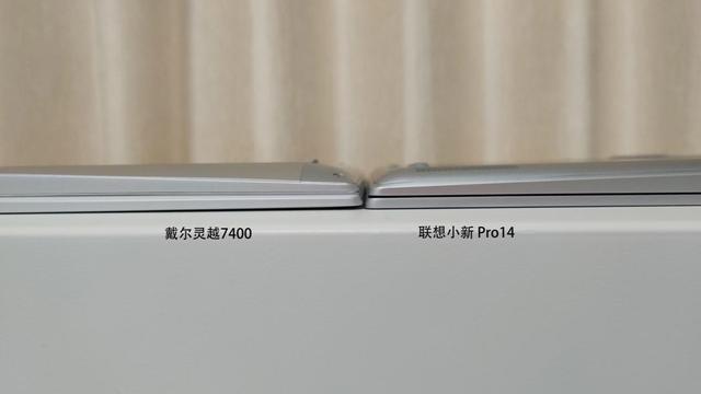 首先,我们先来看看两款产品的厚度和重量。戴尔灵越7400镁合金版的厚度薄至14.9mm,重量轻至1.35Kg,作为一款合金本来说这样的数据算是相当不错了。联想小新Pro14的厚度为14.6mm,重量为1.33kg,比戴尔灵越7400稍显轻薄些。总体来说,两款产品在轻薄程度上的差距较小。