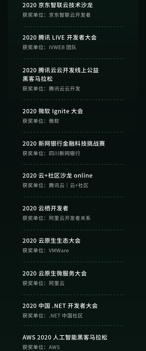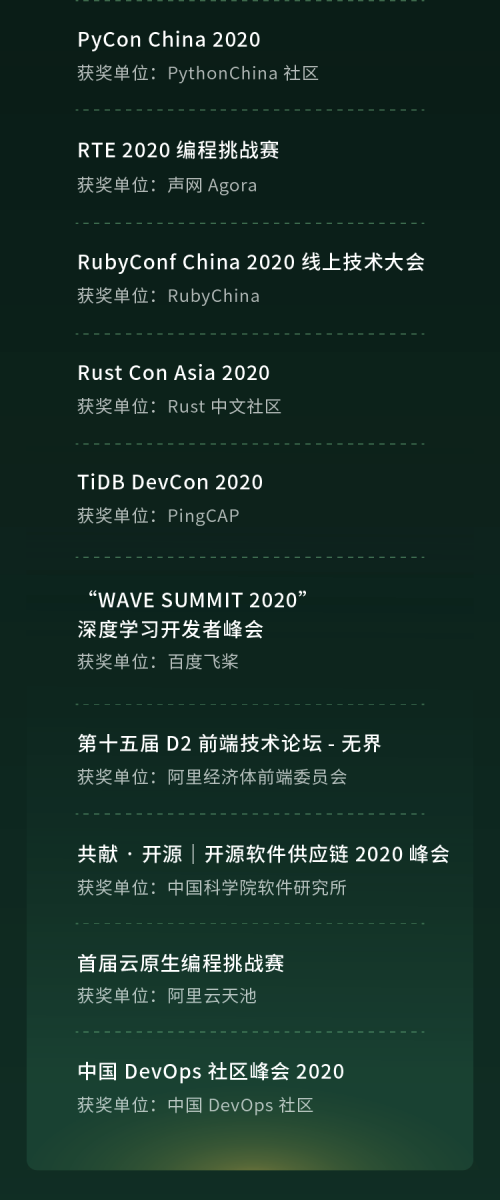 附 2020 中国最受开发者欢迎的技术活动榜单