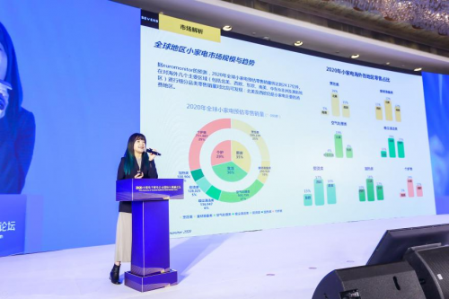 顺德家电商会秘书长赖小明领导上台发表大会致辞后,峰会正式开始。首先是来自谷歌大中华区渠道经理罗颖骏及赛文思营销咨询总经理陈洋对《2021小家电行业出海营销报告》的深度解读。罗经理从疫情引发的线上化加速切入,认为中国小家电出口企业可以利用这次疫情红利,发挥自身的竞争优势——成熟的供应链,抓住高潜力消费群体,通过挖掘爆品打开海外市场。