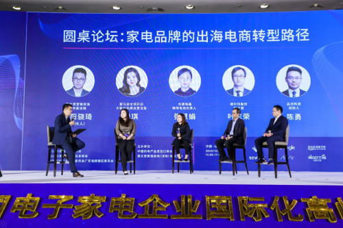 圆桌会谈环节,赛文思营销咨询副总裁欧阳晓琦以“家电品牌出海路径”为主题与来自亚马逊全球开店大客户运营总监潘琪,合捷电器跨境电商负责人张慧娟,品沃科技创始陈勇以及德尔玛股份副总裁叶志荣一同登台探讨。