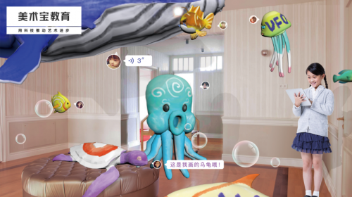 未来美术宝教育也将上线新的板块,为小朋友搭建在线“房间”———这是一个基于AR技术的立体空间。小朋友可以拥有自己IP的“作品房间”,并将创作的绘画“展示”在自己的“房间”里,而且还能邀请好朋友“进入”房间参观,更大程度的丰富了内容性、展示性和互动性。